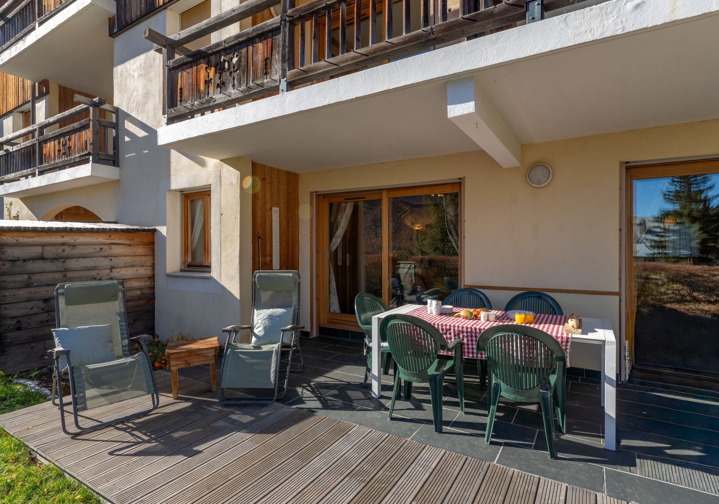 Property type: Ground floor, four bedroom apartment in a chalet-style residence with outdoor heated pool, sauna and steam room (open evenings in winter, all day in summer)