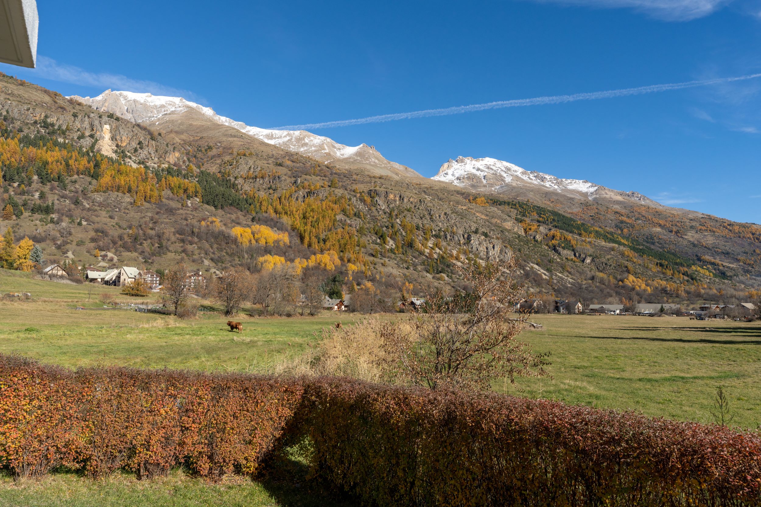 Views: Valley, mountains, pistes from terrace